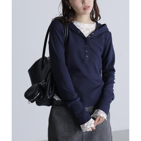 一枚でも着られる中肉厚のカットソーフーディー。透け感がなく肌触りの良いテレコ素材を使用しています。オートミールカラーのみ配色ステッチが入っています。首元はスナップ釦を開けてスキッパーにし、ジャケットやブルゾンとレイヤードすると収まり良く決まります。身頃はボディラインに沿いながらも、裾脇に入れたギャザーでお腹まわりをカバー。裾がテールラインなので、ボトムスアウトした時にバランスが取りやすくなっています。バレルパンツ、カーブパンツ、スウェットパンツなど、ボリュームのあるパンツやミニスカート合わせがおススメです。※モデルの着用画像の場合、光の当たり具合により、実際の色味と異なって見えることがございます。色味は、商品単体の画像をご参照ください。