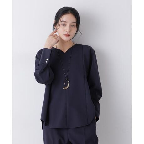 ・浅めVネックで鎖骨まわりを美しく見えるブラウス