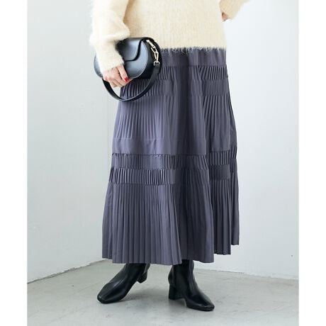 色展開は変形プリーツの立体感が一番わかりやすく、暗くなりがちな冬コーデに華やかさをプラスしてくれる#アイボリー、小さめでランダムドットなので子供っぽくならずコーデのポイントとして取り入れやすい#ブラック柄、