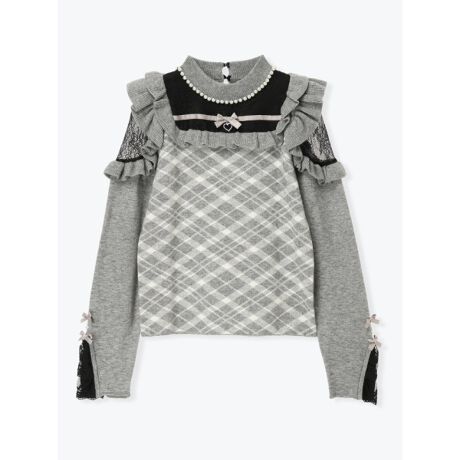 繊細なレースとフリルを贅沢にあしらったオープンショルダーが華やぐトップス。