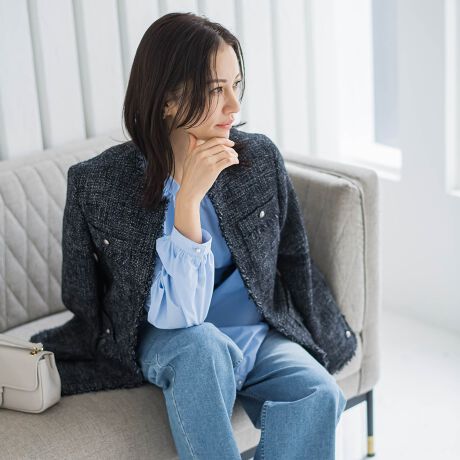トレンドのボクシーシルエットを取り入れた、やや長めレングスのツイードジャケット。