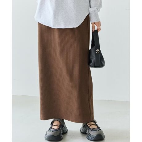 すっきりとしたナローシルエットで、着るだけでスタイルアップが叶うスカート。