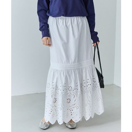 裾の刺繍レースが華やかさをプラスしてくれるフレアスカート。