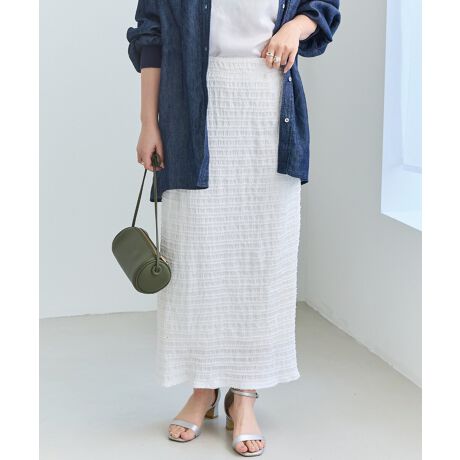ぽこぽことした立体感のある素材が目を惹く、トレンドライクなナロースカート。