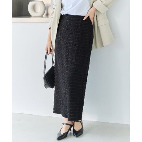 ぽこぽことした立体感のある素材が目を惹く、トレンドライクなナロースカート。