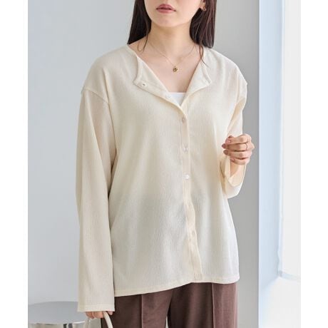 ボタンを開けてカーディガンとしても、ボタンを締めてブラウスとしても着れるデザイン。