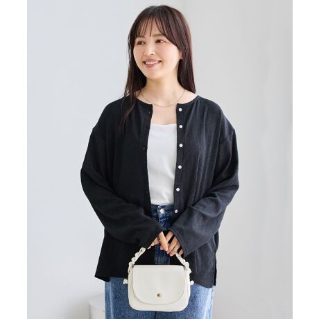 ボタンを開けてカーディガンとしても、ボタンを締めてブラウスとしても着れるデザイン。