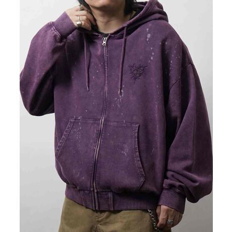 ILL'S トライバルハート刺繍 フルジップパーカー グランジ加工×スプラッシュ加工 フーディ