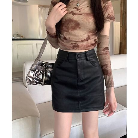 レザー調素材で大人っぽくクールに、カジュアルにもモードにも着こなせる。