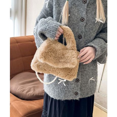 ファーショルダーバッグ パールチェーン鞄