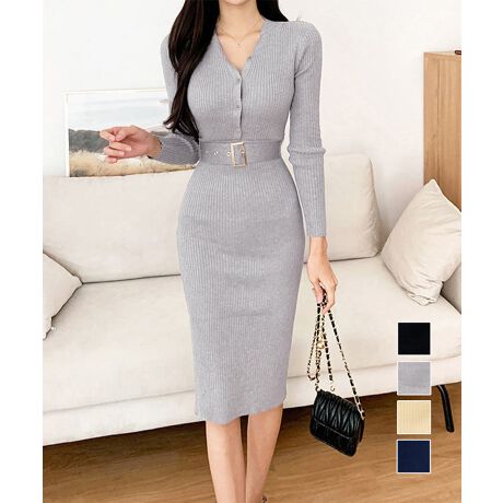 リブニット素材で仕立てた女性らしいスリムフィットワンピース。