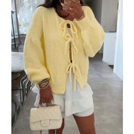 リボンカーディガン前後2WAYニット春秋