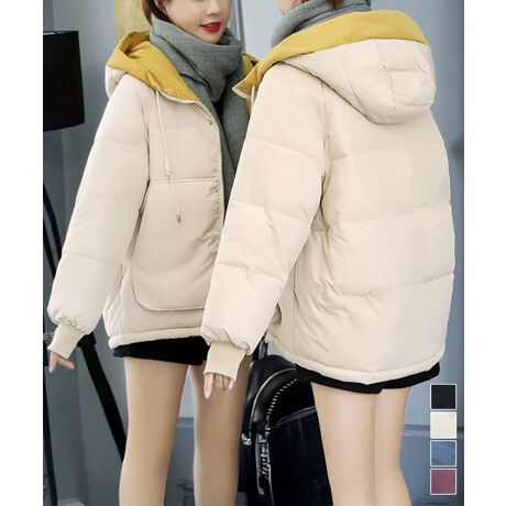 配色フード付き中綿ジャケットレディース冬