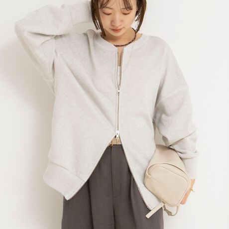・ジップデザインが目を惹く、大人カジュアルにちょうどいいスウェットトップス