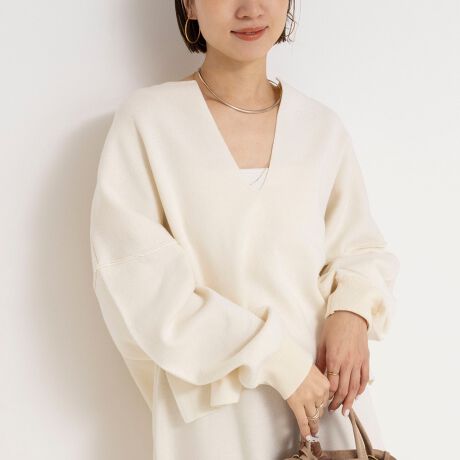 ・スウェットライクな表情ながらニットならではの上品さがあり、きれいめにもカジュアルにも着回せる一枚