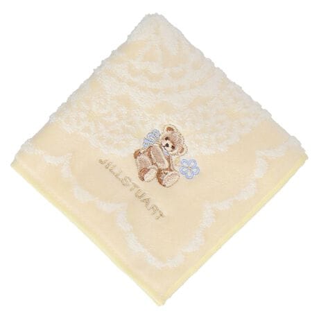 レースのデザインとベアの刺繍の組み合わせが可愛らしいタオルハンカチ。プレゼントにもおすすめな一枚です。