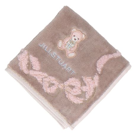 ベアのアップリケ刺繍がチャーミングなタオルハンカチ。小さなカバンでも持ち運びしやすいミニサイズもポイントです。