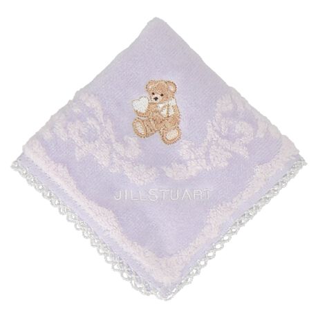 ベアの刺繍がチャーミングなタオルハンカチ。小さなカバンでも持ち運びしやすいミニサイズもポイントです。