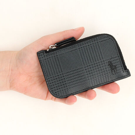 [型番:P-HDT715]POLO RALPH LAUREN Hound’s Toothシリーズのフラグメントケース。牛革の表面にエンボス加工や吹き落とし加工を施し表面に濃淡を出しハンドトゥース柄に仕上げました。個性的でモード感のあるワンランク上のシリーズです。 (機能・収納)カード段1 ファスナー小銭入
