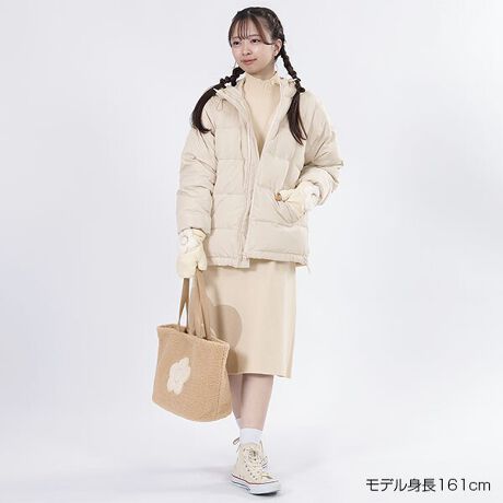 リアルダウンフェザーを使用したフード付きブルゾン。◆ポイント・左胸にロゴ刺繍入り・裾とフードにドローコード入り・ドローコードの穴はデイジー型の刺繍・ポケット裏はフリース仕様で暖か・袖口にゴム入り・裏地付き・長袖◆コーディネートパンツやスカートにも好相性な一枚。カジュアルからきれいめコーデにもおすすめです。[型番:225-554810]
