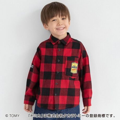トミカのトップスにさっと羽織れるネルチェックの長袖シャツ