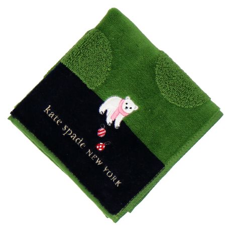 マフラーを巻いたボーラーベアの刺しゅうがポイントのタオルハンカチ。ご自分用にはもちろん、ちょっとした贈り物にもおすすめです。