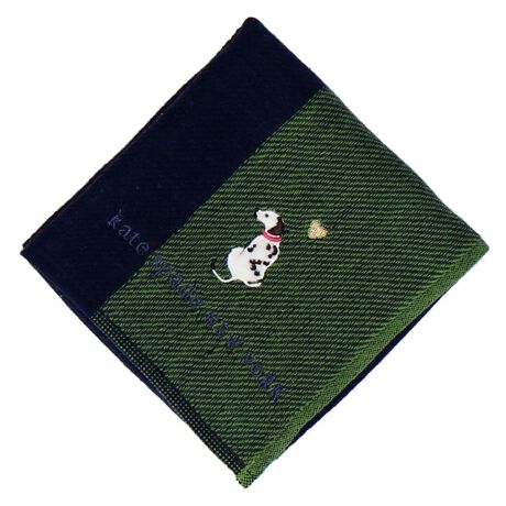 ダルメシアンの刺しゅうがワンポイント入ったガーゼタオルハンカチ。表がガーゼ、裏がパイルになっているので薄手でかさばりません。ご自分用にはもちろん、ちょっとした贈り物にもおすすめです。