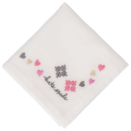 スペードフラワーと散りばめたハートの刺繍が目を惹くエンブロイダリーハンカチ。結婚式や式典などセレモニーの必需品としても◎ ご自分用にはもちろん、ちょっとした贈り物にもおすすめです。