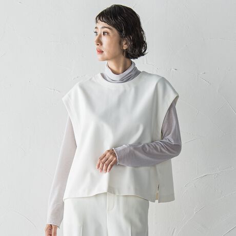 フレンチスリーブで肩まわりはゆったりとしつつ、全体は程よいリラックス感を持たせたシルエットに仕上げました。