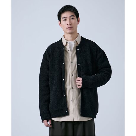 モール糸の素材感を活かした、クルーネック(ノーカラー)デザインのカーディガンです。
