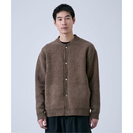 モール糸の素材感を活かした、クルーネック(ノーカラー)デザインのカーディガンです。
