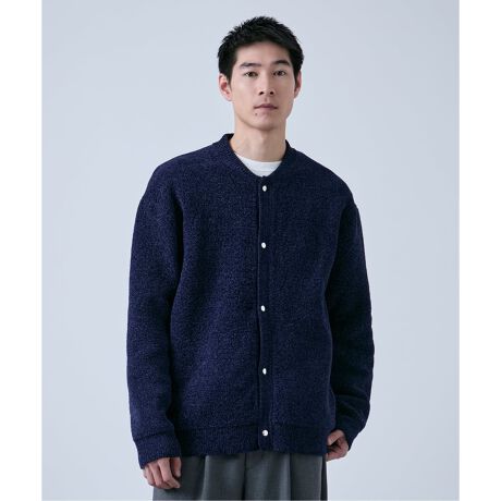 モール糸の素材感を活かした、クルーネック(ノーカラー)デザインのカーディガンです。