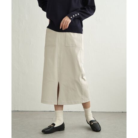 伸縮性のあるカット素材を使用し、動きやすさと心地よさを両立したタイトスカート。