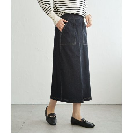伸縮性のあるカット素材を使用し、動きやすさと心地よさを両立したタイトスカート。