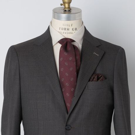 規則的に配置されたコモン柄がVゾーンにアクセントを与えます。