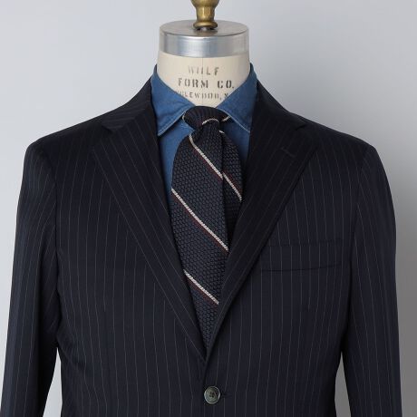 ボタンダウンシャツに合わせればアメリカらしいトラッドな雰囲気を、セミワイドカラーやタブカラーと硬派なスーツを合わせればヨーロッパらしい端正な雰囲気をお楽しみいただける懐の深いネクタイです。