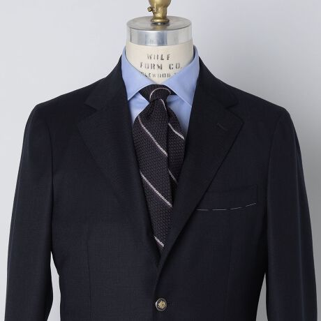 ボタンダウンシャツに合わせればアメリカらしいトラッドな雰囲気を、セミワイドカラーやタブカラーと硬派なスーツを合わせればヨーロッパらしい端正な雰囲気をお楽しみいただける懐の深いネクタイです。