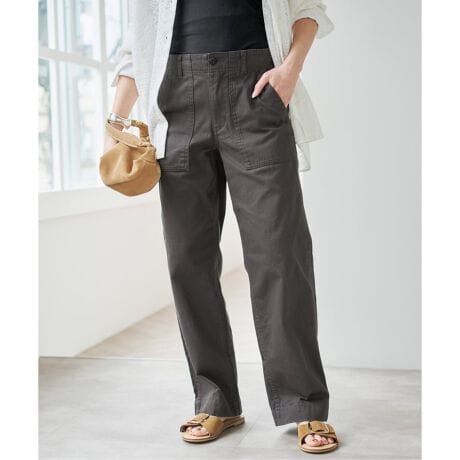 トレンド感のあるややローライズ設計に、すとんとまっすぐ落ちるストレートシルエットが、