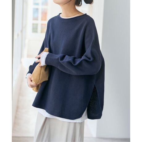 首元をきれいに見せるボートネック、腰回りをカバーする後ろ丈の長さ、ラウンドした脇ラインのステップヘムなど計算されたディテールで、1枚着るだけでコーディネートが完成。