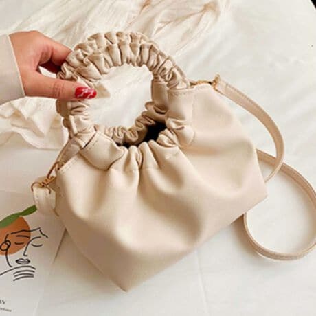 -大人かわいい丸型ギャザー持ち手でコーデを格上げ