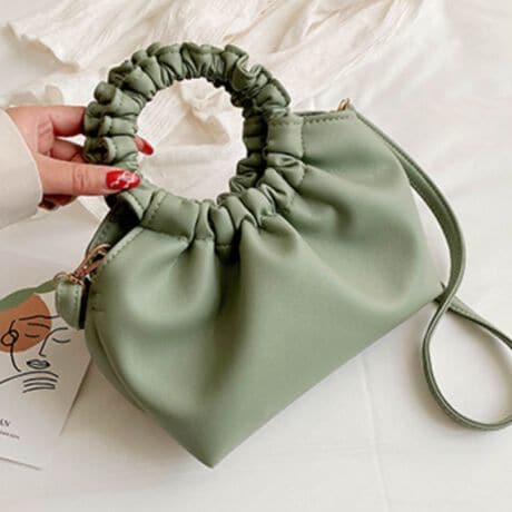 -大人かわいい丸型ギャザー持ち手でコーデを格上げ
