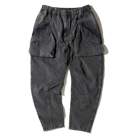 ワイドテーパードシルエットを採用し、リラックス感とスタイルアップを両立。立体的なパターンで構築されたカーゴポケットは実用性と存在感を兼備。ウエストゴムとドローコードで調整が可能なため、ストレスフリーに着用できます。シンプルながら存在感があり、大人のカジュアルスタイルに馴染む一本。
