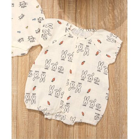 BREEZE(ブリーズ)のカバーオール・ロンパース「ねこ・うさぎガーゼロンパス」は、小さいお洋服にこだわりを詰め込んだ大人顔負けのデザインが人気!出産祝いのギフトにもおすすめです♪