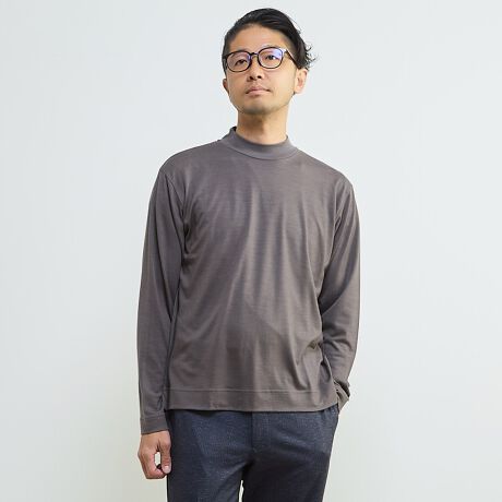 上質素材の持つ高級感抜群な見た目から、キレイめオフィスカジュアルまで対応できる優秀なウールモックネック長袖Tシャツです。