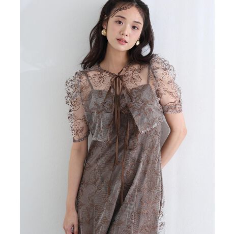 立体感のあるレースボレロがフェミニンな印象を引き立てます。