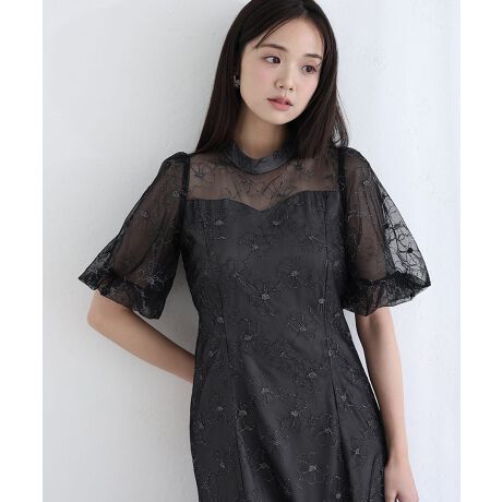 胸元はシアー切り替えを採用し、デコルテラインを美しく演出しながら華やかすぎない抜け感をプラス。