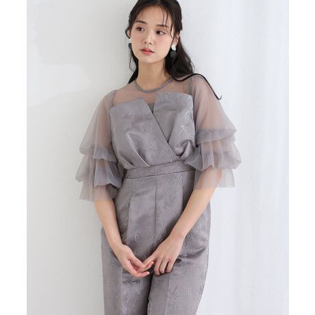 軽やかなシアー素材のフリルスリーブがフェミニンな華を添えます。