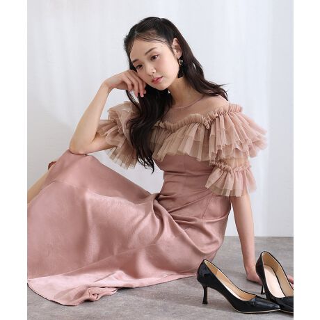 ふんわり重なるフリルと女性らしいシルエットが際立つクラシカルなドレス。
