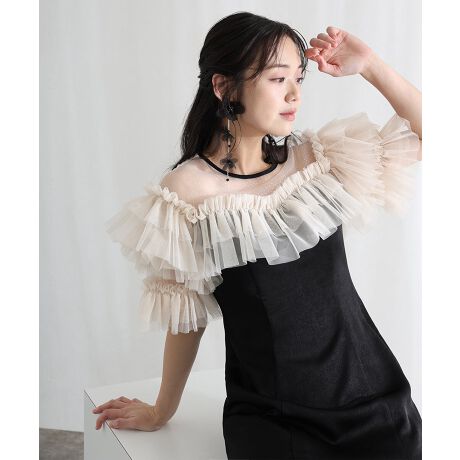 ふんわり重なるフリルと女性らしいシルエットが際立つクラシカルなドレス。