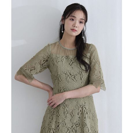上品な総レースが、特別な日の装いに華やぎを添える一着。